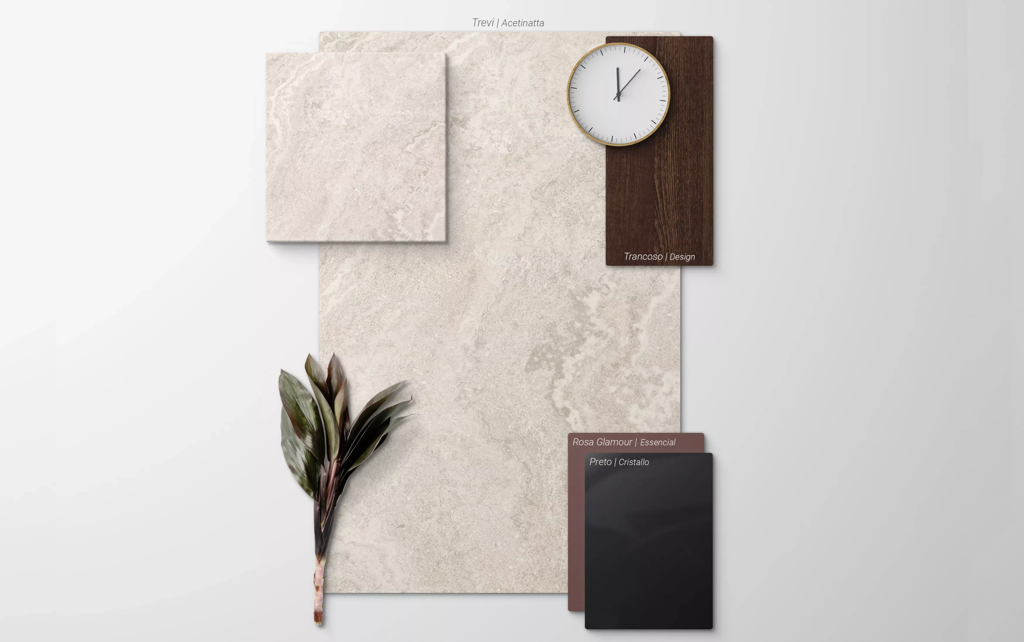 Inspirado nos travertinos italianos, seus movimentos fazem referência ao material utilizado na construção e também aos movimentos das águas da Fontana di Trevi, trazendo o clássico de uma forma nova e inesperada.