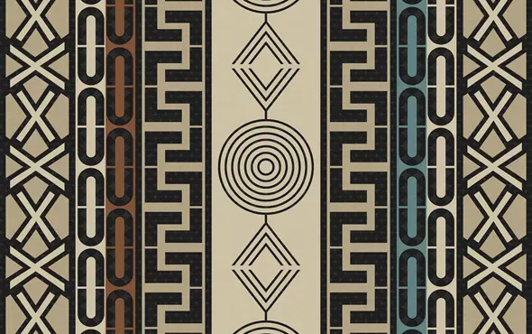 Idealizado pela arquiteta Denise Zuba, o padrão é inspirado em grafismos tribais, realçado por cores que são tendência em 2024 e que são também atemporais, remetendo a água e terra.