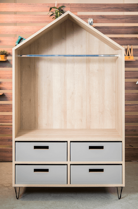 As gavetas foram feitas simulando caixotes de feira, que deixa o móvel mais descolado.