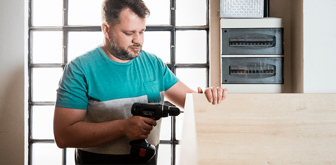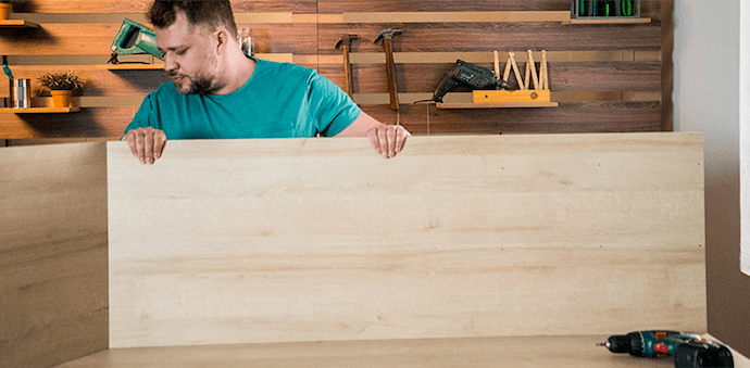 Você vai parafusar cada um dos painéis de madeira pelo lado de fora do armário.
