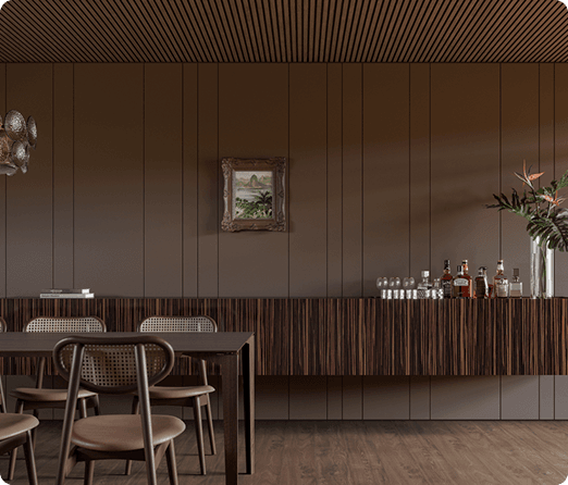 O Carvalho Brun traduz o encontro entre memória e profundidade. Em tons escuros e envolventes, sua presença cria um refúgio sensorial, onde o afeto se manifesta no silêncio da matéria. Uma madeira que acolhe, instiga e transforma o espaço em uma experiência íntima, intensa e carregada de significado.