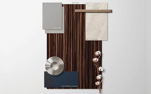 Inspirados nas madeiras aquecidas do modernismo brasileiro como pau-ferro e jacarandá, esse padrão une o refinamento do modernismo com a sofisticação contemporânea. Suas linhas criam uma textura rica e dinâmica, destacando o caráter geométrico e linear, enquanto a tonalidade profunda da madeira confere um toque de elegância atual. Proporcionando profundidade a qualquer espaço.
