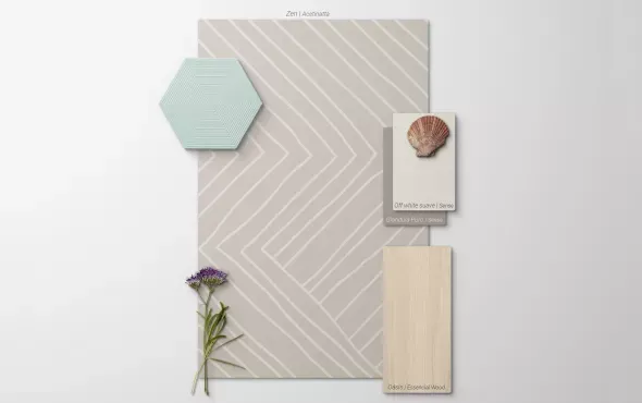 Idealizada pelo arquiteto Felipe Savassi, a estampa Zen traz linhas minimalistas num padrão abstrato como elemento visual e foi inspirada tanto em um jardim japonês Zen, que é um espaço de equilíbrio e simplicidade, quanto na arquitetura modular, que é um sistema de construção baseado na repetibilidade e padronização de módulos.